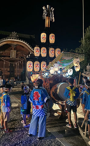 拝殿でお清めを済ませた子供達は「神の使い」となり、山車の太鼓や鉦の囃子で、神社の神や地元の人々に山の神を迎え入れたことお知らせします。